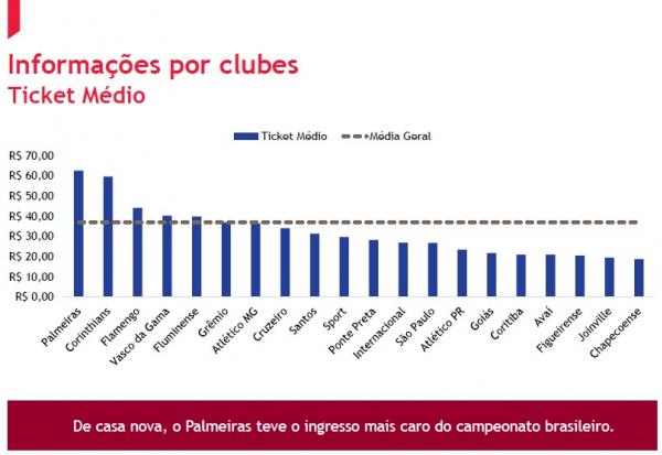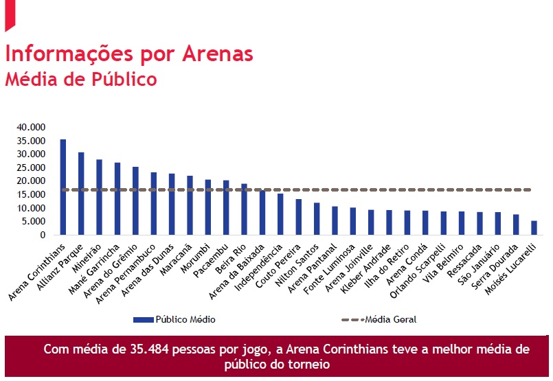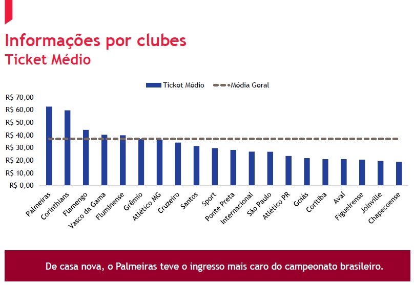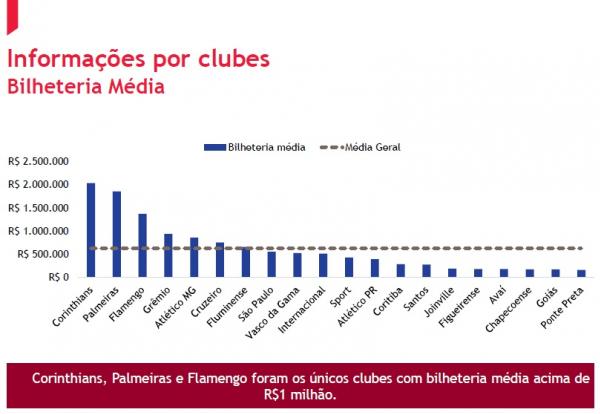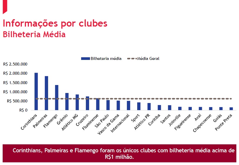 O estudo mostra, também, que o Gigante da Colina ficou em 9º lugar em média de bilheteria por jogo, com um montante na casa dos R$ 500 mil: