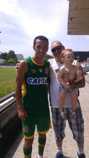 Depois do treinamento, o camisa 10 e Jorginho foram à arquibancada social para dar atenção a um torcedor mirim, Joaquín, que estava com os pais Fábio e Vanessa em uma visita a São Januário. A família mora em Florianópolis. Nenê posou para uma foto com o pai e o menino.