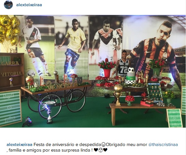 Festa de Alex Teixeira teve decoração do jogador com a camisa do Vasco; veja