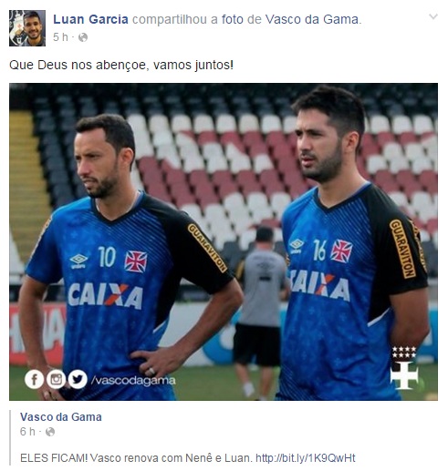 VASCO ESTENDE CONTRATO DE NENÊ ATÉ 2018 E O DE LUAN ATÉ 2019