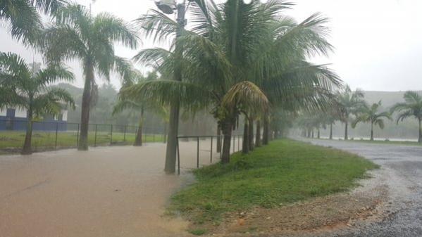 Forte chuva alagou acesso ao CT em Pinheiral. Jorginho paralisou o treino. #gevas