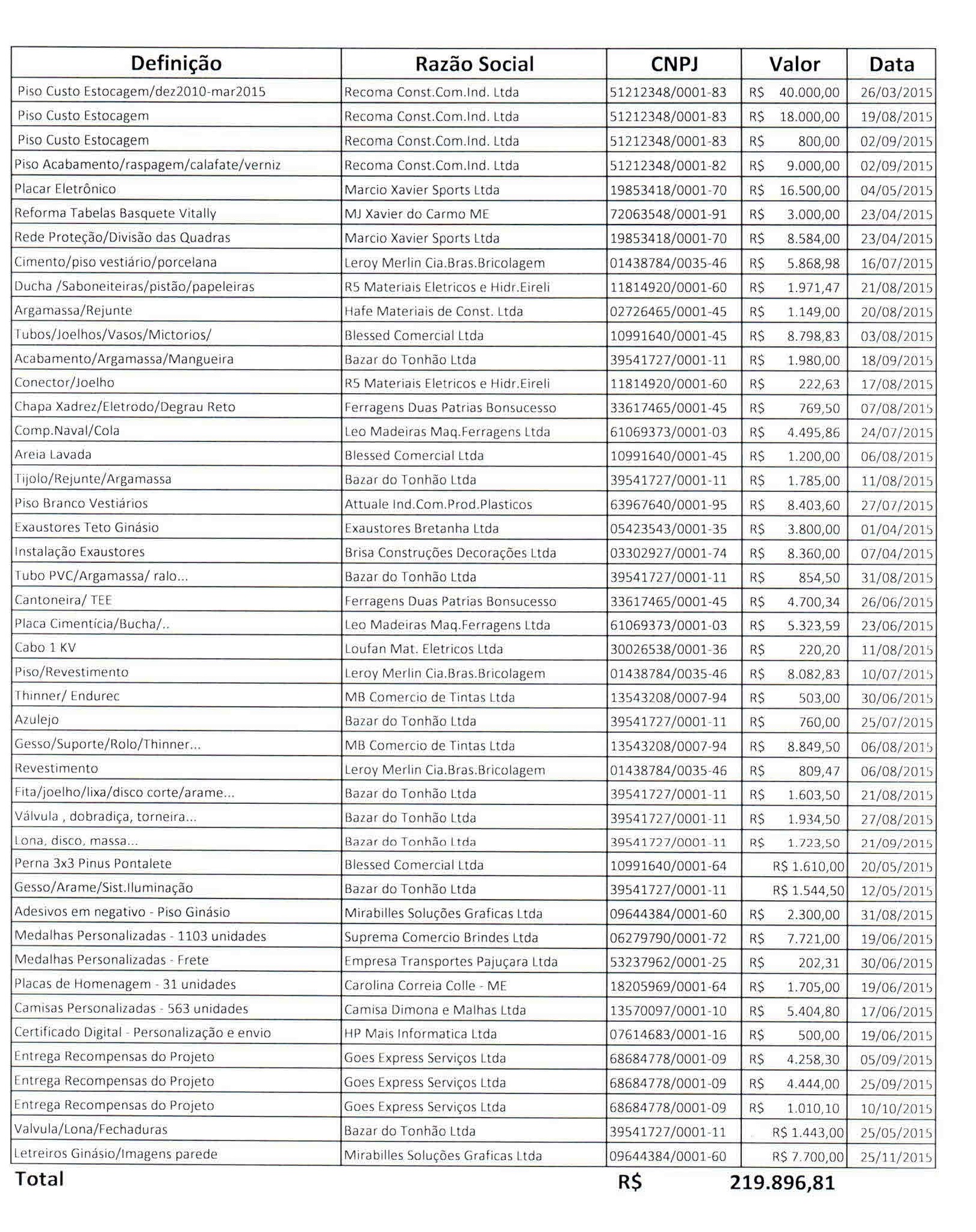 No dia da reinauguração do Ginásio, o Vasco da Gama presta contas dos recursos recebidos de seus torcedores na campanha de financiamento coletivo. Além do arrecadado, o clube também investiu recursos próprios para complementar as obras necessárias para a modernização do Ginásio.