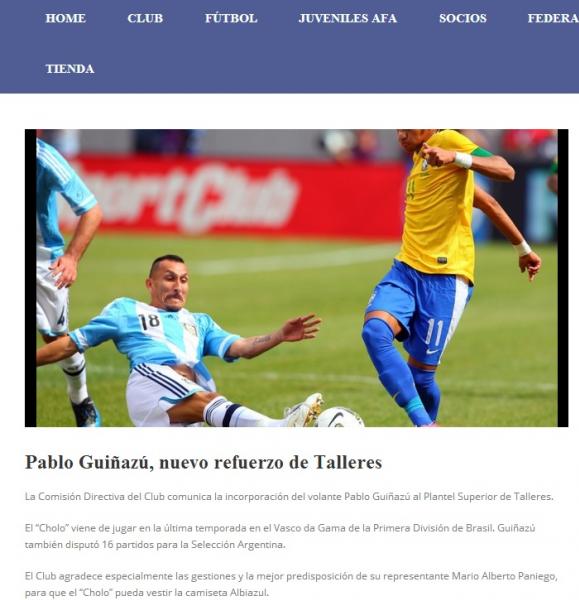 Talleres-ARG anuncia, em seu site oficial, contratação de Guiñazú