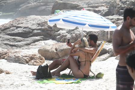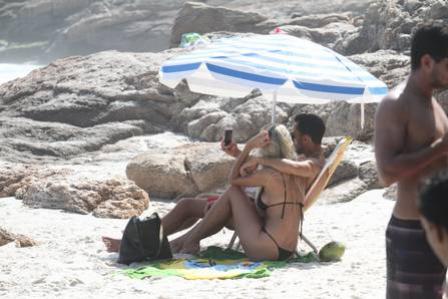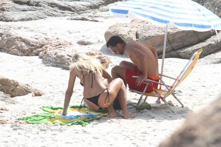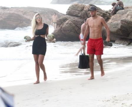 Novo ídolo do Vasco, Nenê aproveitou a folga para curtir com a mulher gata a Praia da Joatinga, na Zona Sul do Rio. Ele e Jessica Garducci tentaram ficar incógnitos na praia, que é até mais afastada, mas o artilheiro foi tietado pelos torcedores do time.