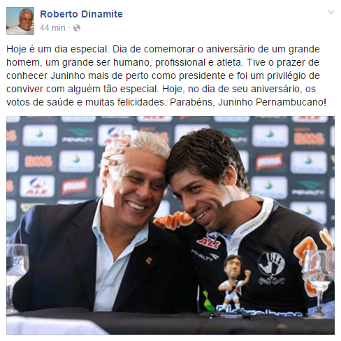 Completando 41 anos neste sábado, Juninho Pernambucano ganha homenagem de Roberto Dinamite
