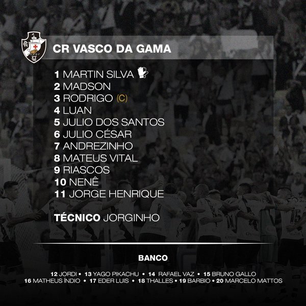 CR Vasco da Gama @vascodagama Escalação oficial do Vasco para o jogo contra o Madureira. #Profissional #Carioca