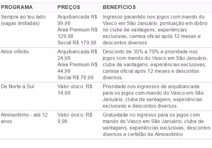 Resumo dos planos de sócio-torcedor do Vasco. #gevas