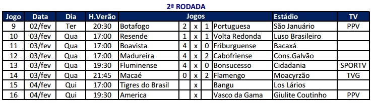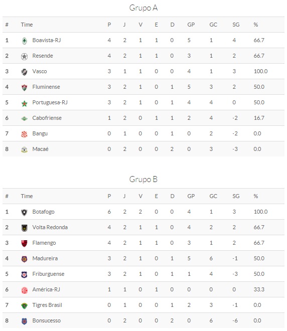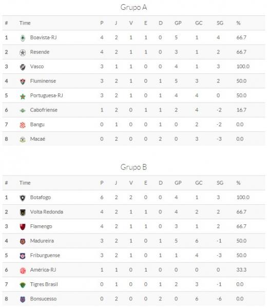 Com o resultados dos jogos já realizados da 2ª rodada da 1ª fase do Estadual, o Vasco, se derrotar o América nesta 5ª-feira (04/02), assumirá a liderança isolada do Grupo A.