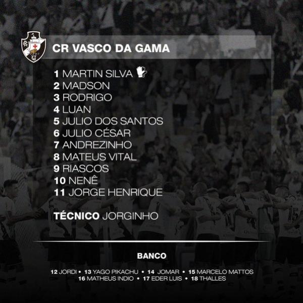 CR Vasco da Gama @vascodagama Escalação do profissional para a partida de logo mais contra o América. #VamosVasco #VASxAME