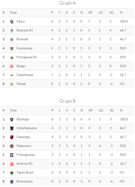 Fonte: NETVASCO (texto), Superesportes (classificação), FutRio (resultados, autores dos gols), FFERJ (artilharia, próximos jogos)