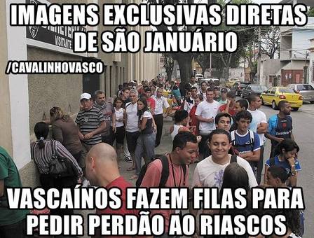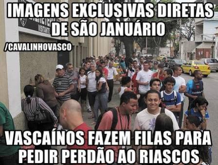 “Imagens exclusivas diretas de São Januário. Vascaínos fazem filas para pedir perdão ao Riascos”, escreveram no meme.