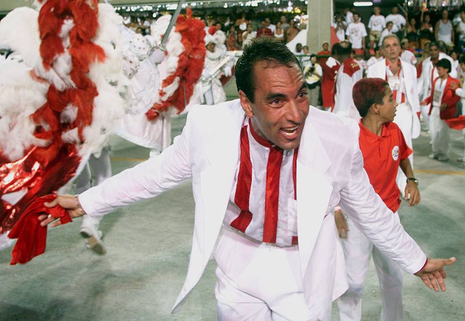 1999: Ainda jogador da Fiorentina, Edmundo marca presença no desfile do Salgueiro |