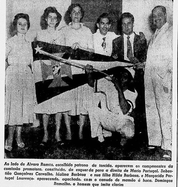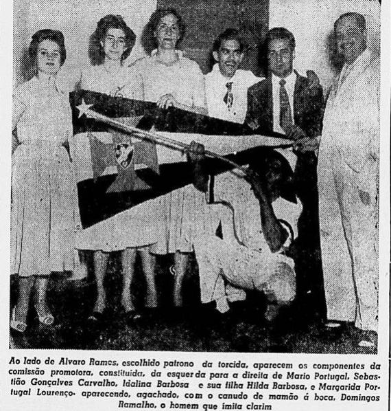 “De tal forma foi essa colaboração, disseram, que nó da Torcida Uniformizada, por uma questão de gratidão e reconhecimento, resolvemos convidar o Sr Alvaro Ramos para nosso patrono e na nossa Sede provisória, a Rua Frei Caneca 332, vamos inaugurar brevemente o seu retrato, numa solenidade que contará com a presença de todos os integrantes do nosso grupo. Queremos esclarecer que a nossa Torcida não tem Chefe, mas nós constituímos uma comissão diretora, para umas determinadas providencias e decidimos que o Sr Alvaro Ramos seria o nosso patrono, como lhe prestamos pelo muito que ele tem feito.”