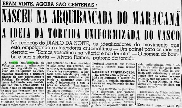 A ideia foi acolhida com entusiamo e no segundo jogo do Vasco no campeonato do Rio, em Niterói, lá estávamos em número de vinte, em grande forma”.