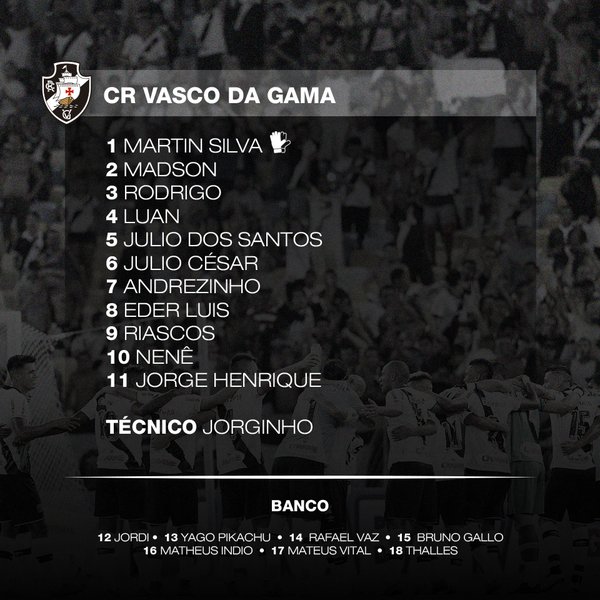 CR Vasco da Gama @vascodagama Escalação oficial do profissional para o jogo de logo mais contra o Volta Redonda. #VamosGanharVasco #VASxVOL