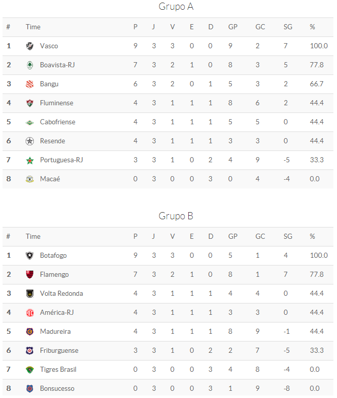 Fonte: NETVASCO (texto), Superesportes (classificação), FutRio (resultados, autores dos gols), FFERJ (artilharia, próximos jogos)