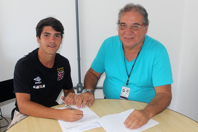 O Vasco da Gama acertou nesta semana a permanência de mais duas promessas de suas categorias de base. Integrantes do elenco sub-17 campeão estadual em 2015, o volante Rodrigo Fernandes e o meio-campista Eduardo Feitoza assinaram o primeiro contrato profissional com o Gigante da Colina. O primeiro fez acordo até a temporada de 2018, enquanto o segundo até o ano de 2019.