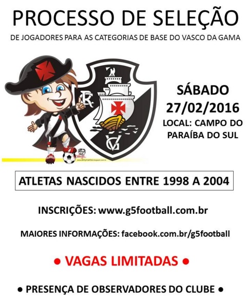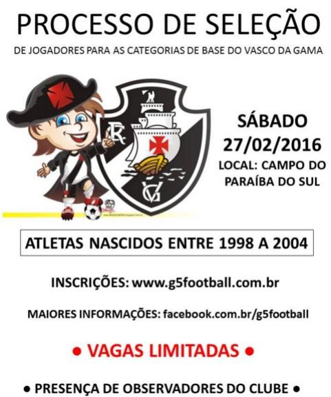 Vasco realizará peneira no dia 27/02 em Paraíba do Sul