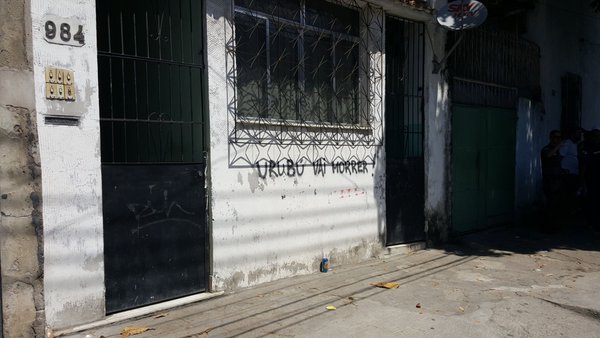 Felipe Schmidt @schmidt_felipe No muro em frente à entrada dos rubro-negro: "Urubu vai morrer". Flamenguistas: "Vascaíno vai morrer." #trclassico