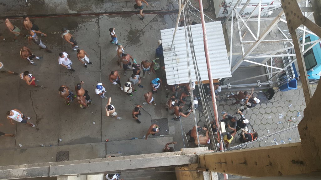Primeira bomba estourou no lado vascaíno, bem na divisão. Não deu para ver de onde partiu. #trclassico