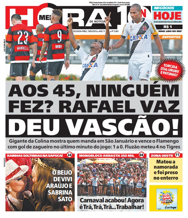 Veja como a imprensa carioca destacou mais uma vitória do Vasco sobre o Urubu