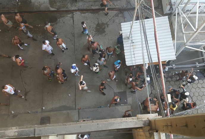 Na zona que separava em homens da polícia, grades, tapumes e trilho com vidros, a cada balão vermelho ou preto que cruzava a faixa neutra e entrava em território vascaíno, um torcedor corria para estourar o mais rápido possível "os intrusos". Disposição não faltou para confusão. Os rubro-negros entraram em um setor isolado, inacessível aos vascaínos. Os poucos que tentavam chegar - ou provocar longe das grades - eram logo afastados. Donos daquele pequeno pedaço, que tinha ameaças pichadas em muros, os flamenguistas aproveitaram para provocar: