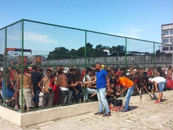 Veja fotos dos funcionários do Vasco dando água para a torcida do Urubu em São Januário