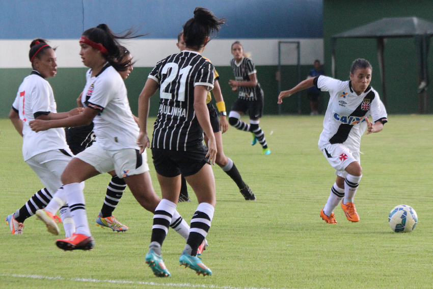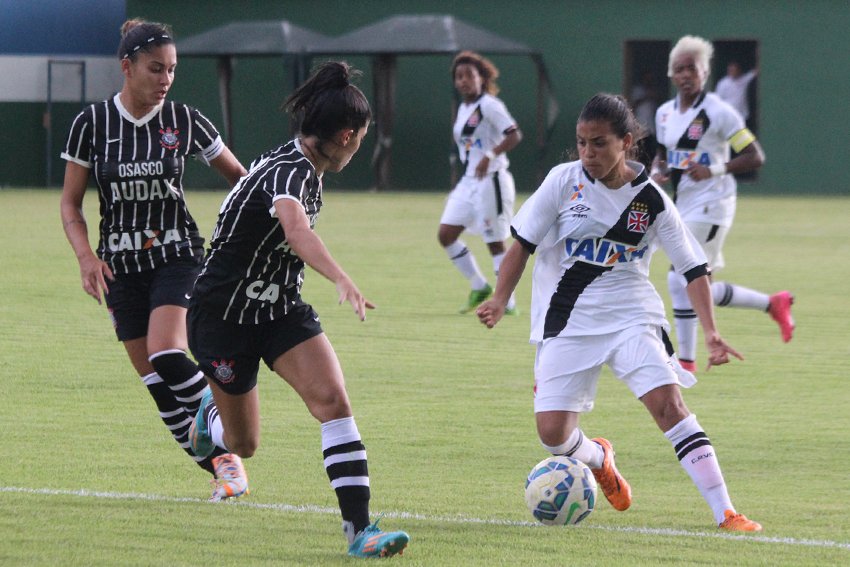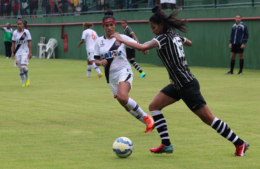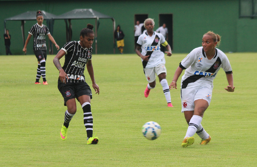 Dentro de campo, as meninas vascaínas não foram páreo para as paulistas. No primeiro tempo, o Gigante da Colina já perdia por 3 a 0. Chu abriu o placar aos 21 minutos. Byanca Brasil ampliou aos 35 e Gabi Nunes fez o terceiro no minuto seguinte. Após o intervalo, a superioridade corintiana prevaleceu e logo no primeiro minuto, Gabi marcou o quarto. Aos quatro minutos, novamente Byanca Brasil marcou e fez o quinto e aos 15, Gabi Nunes fechou o placar. O Corinthians (SP) enfrentará outro carioca na competição: o Flamengo, pelo Grupo 6, na segunda fase.