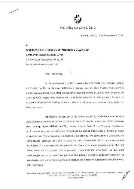 Carta à Federação de Futebol do Estado do Rio de Janeiro