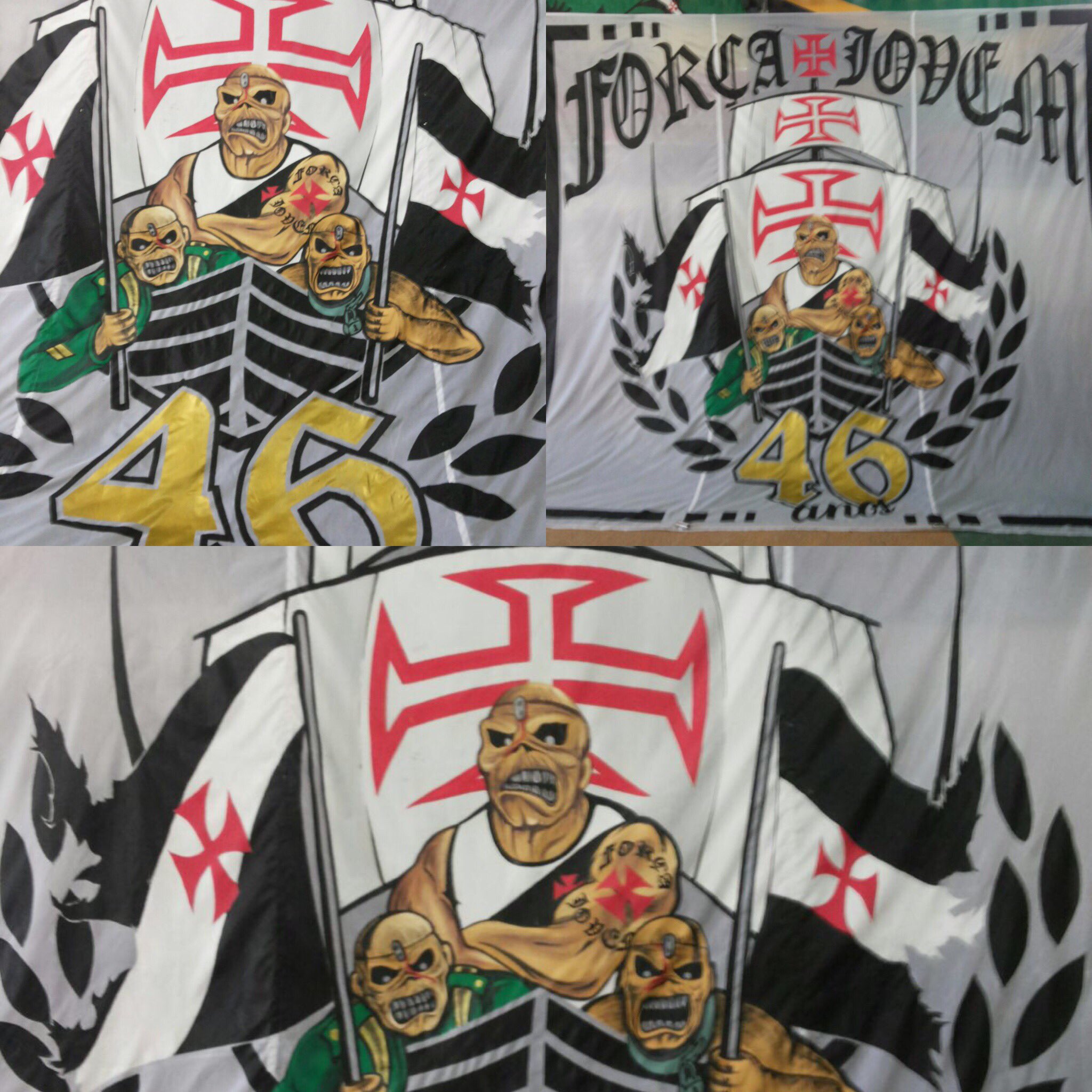 Força Jovem do Vasco @fjv_oficial Em primeira mão mostramos a bandeira em homenagem aos 46 anos da Força Jovem.
