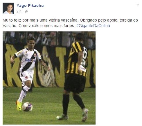 No Facebook, Luan e Pikachu comemoram mais uma vitória do Vasco