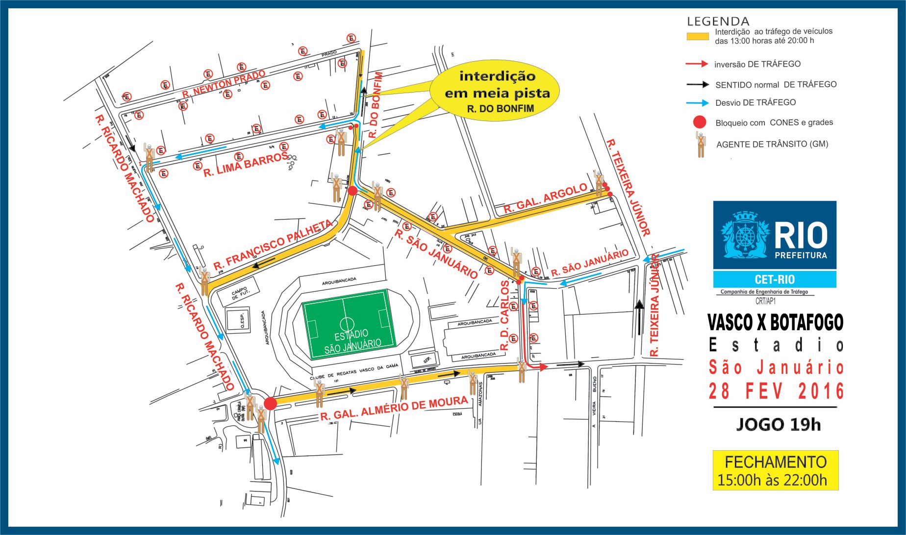 – Rua Bonfim, faixas sentido Estádio São Januário, no trecho compreendido entre a Rua Newton Prado e a Rua São Januário;