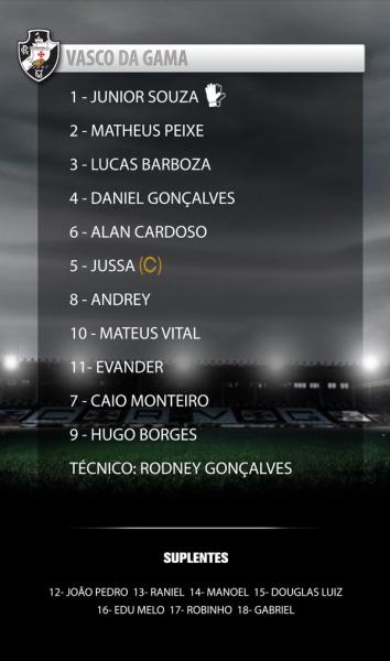 CR Vasco da Gama @vascodagama Escalação do Vasco para o clássico contra o Botafogo, pela Taça Guanabara sub-20. #CariocaSub20 pic.twitter.com/tVVDmw5HVn