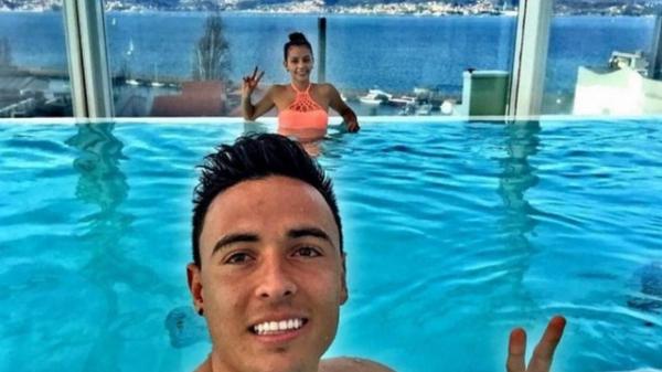 Nesta terça-feira, no Instagram, ele postou uma foto onde aparece curtindo uma piscina, com uma bela vista ao fundo, ao lado da mulher.