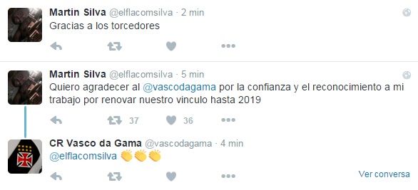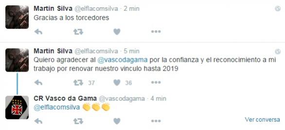 Fonte: Twitter do jogador Martín Silva, Twitter oficial do Vasco
