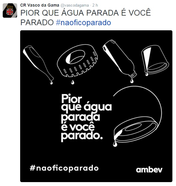 Vasco entra na campanha 'Pior que água parada é você parado', contra o Aedes aegypti