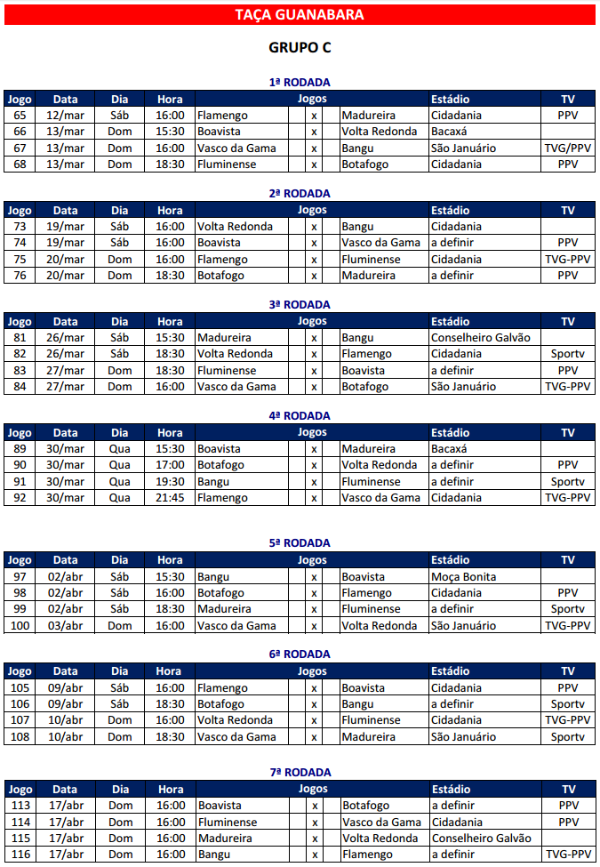 FFERJ divulga tabela completa da Taça Guanabara, com datas e horários