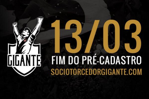 Devido à grande participação dos torcedores vascaínos, o período de pré-cadastros será encerrado no próximo dia 13. Até a noite deste domingo, os vascaínos podem conhecer os benefícios do programa e antecipar seu cadastro na categoria com vagas limitadas ou se registrar para receber notificações sobre o início das adesões no site www.sociotorcedorgigante.com.