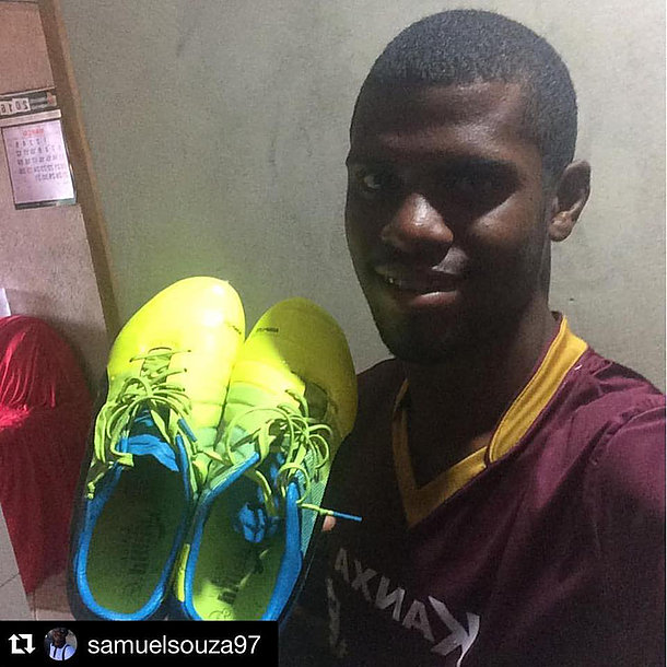 - Ontem eu tive o prazer de ir em São Januário em uma partida pelo Carioca Sub 20 entre Vasco x Macaé e estava com a minha chuteira abrindo e no meio da partida o jogador Mateus Vital, mais conhecido como Mateus Pet, perguntou quanto eu calçava e por um acaso eu calço o mesmo número que ele. Simplesmente com todo sua humildade e personalidade me deu a chuteira, na hora fiquei surpreso e feliz e nunca mais vou esquecer esse dia. Obrigado Mateus Vital - comentou Samuel Souza em sua conta de Facebook.