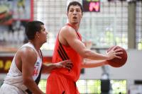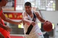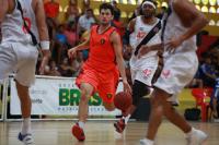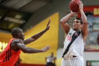![]() Jeff Agba se livrando da marcação do adversário |