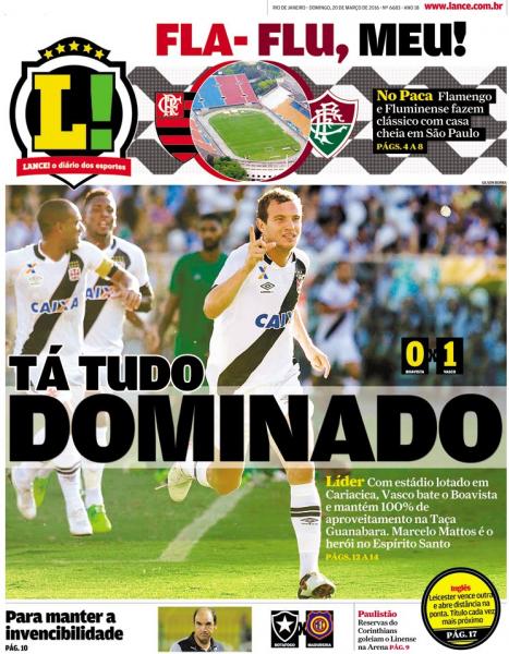 Veja como a imprensa carioca destacou a vitória do Vasco sobre o Boavista