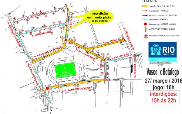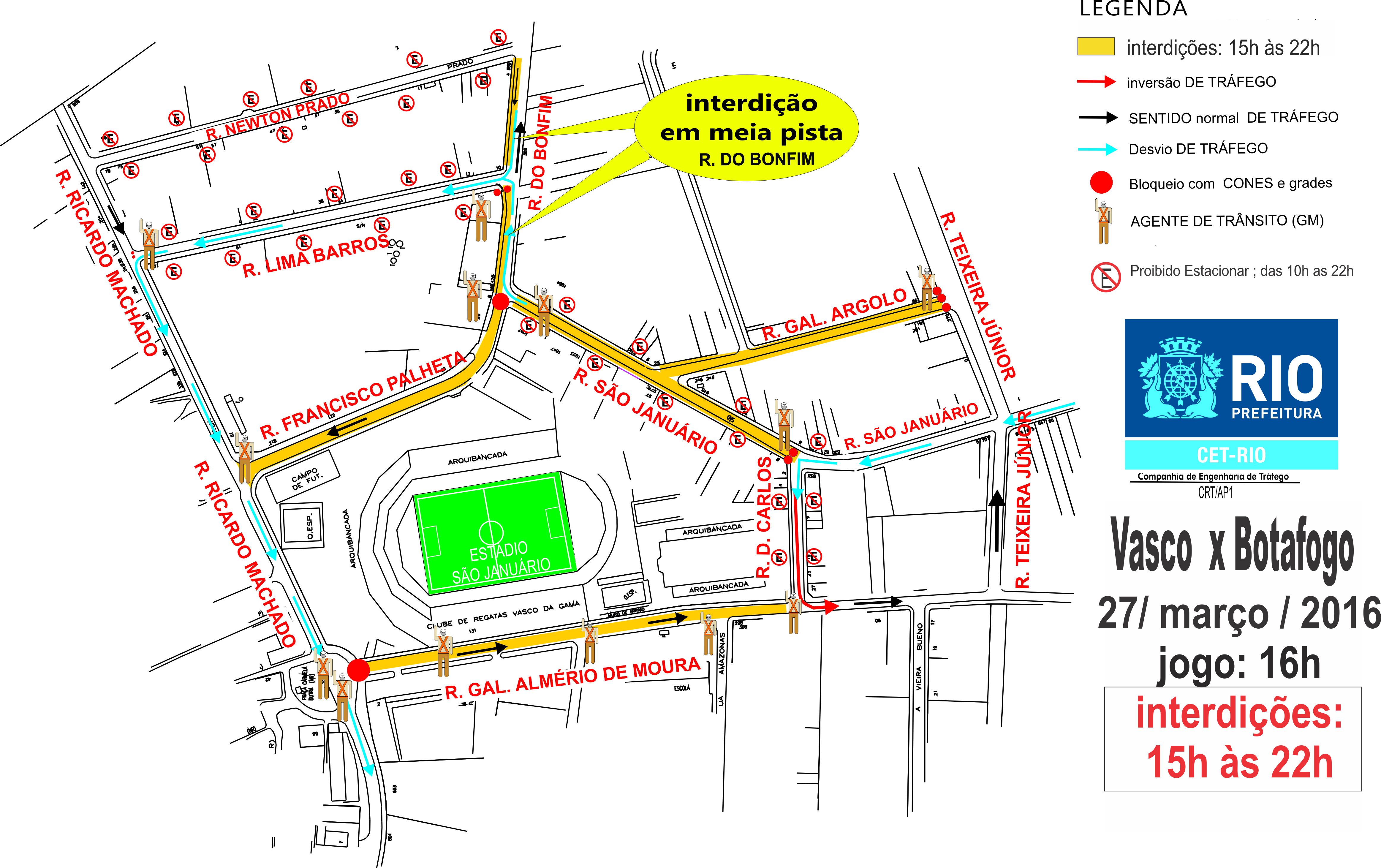 – Rua Bonfim, faixas sentido Estádio São Januário, no trecho compreendido entre a Rua Newton Prado e a Rua São Januário;