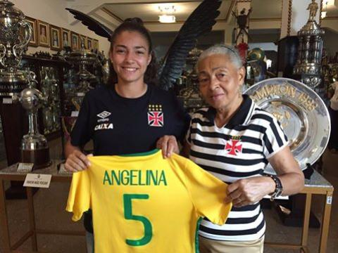 Responsável pelo salão de troféus de São Januário há mais de 35 anos, Dona Angelina recebeu sua xará boa de bola nesta quinta-feira (24/03). Destaque da Seleção Brasileira sub-17 no último Campeonato Sul-Americano, a volante Angelina Alonso retornou ao país e não perdeu a oportunidade de matar a saudade da Colina Histórica. Ela já retornou aos treinamentos com a equipe sub-20, que se prepara para a Liga Nacional.