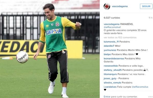 Por meio de seu Instagram, Vasco homenageou o aniversariante Martín Silva