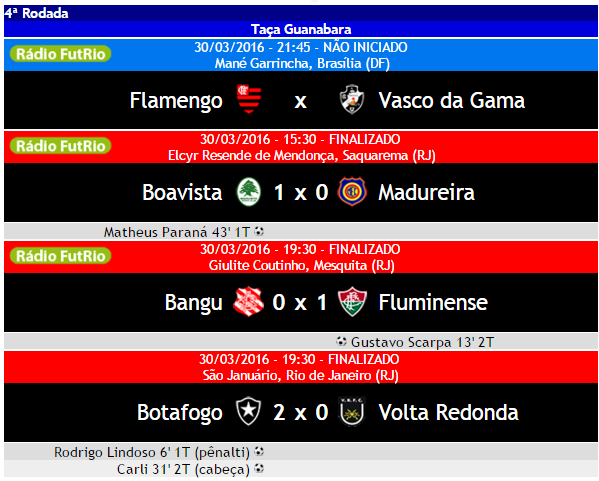 Fonte: FutRio (resultados, autores dos gols), GloboEsporte.com (classificação)