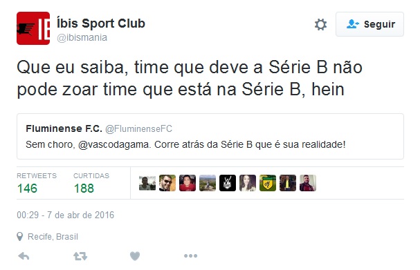 Fonte: Twitter oficial do Íbis
