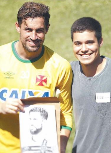 Sucesso entre os vascaínos na internet, Christian de Faria teve um dia especial ontem em São Januário. Com desenhos realistas, o jovem de 21 anos retratou Martín Silva e Nenê, e entregou pessoalmente cópias aos dois, com direito a autógrafos nos desenhos e fotos.