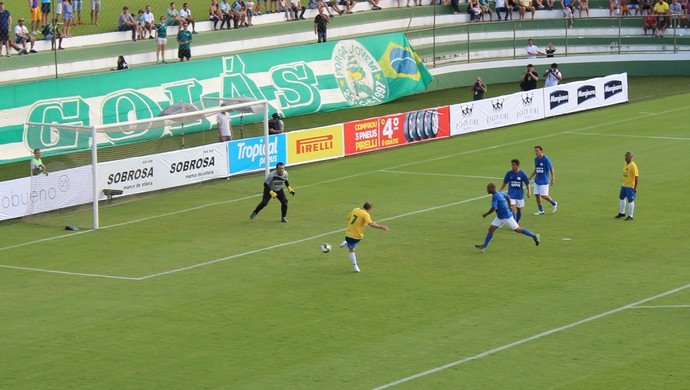 O time de Alex Dias foi composto por Kléber Guerra; Maurinho, Júnior Baiano, Ronaldão e Ronildo; Wilson Goiano, Daniel Vilela, Thiago Coimbra e Marcelo Borges; Daniel Vilela e Alex Dias. As outras opções eram Lauro, Rafael Dias, Guará, Carlos Alberto, Alex Júnior, Luciano, Paulo Nunes, Coronel Sílvio, Winston e Pedro Paulo. Esta foi a segunda vez em um mês que Romário marcou em presença em Goiás. Em março, ele disputou torneio de futevôlei em Trindade.