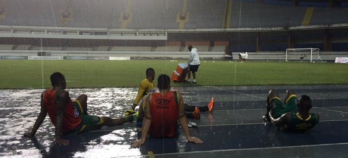 O Vasco fez, nesta terça-feira, o reconhecimento do gramado do Mangueirão, onde enfrentará o Remo na quarta pela estreia na Copa do Brasil. O treino foi aberto aos torcedores, que logo gritaram o nome dos jogadores quando eles entraram no campo. O time ainda teve que encarar a forte chuva de Belém. Assim que anoiteceu, o dilúvio começou.