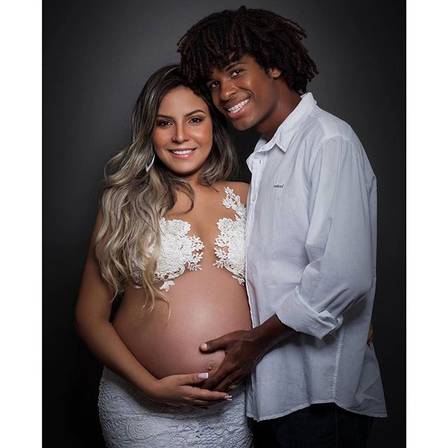 O atacante William Barbio pode até não viver uma grande fase pelo Vasco, mas ao menos as coisas andam bem na esfera pessoal. O jogador postou foto nesta terça-feira em que aparece beijando a barriga da esposa, Thays. Ela está perto de ter a primeira filha do casal, Júlia.